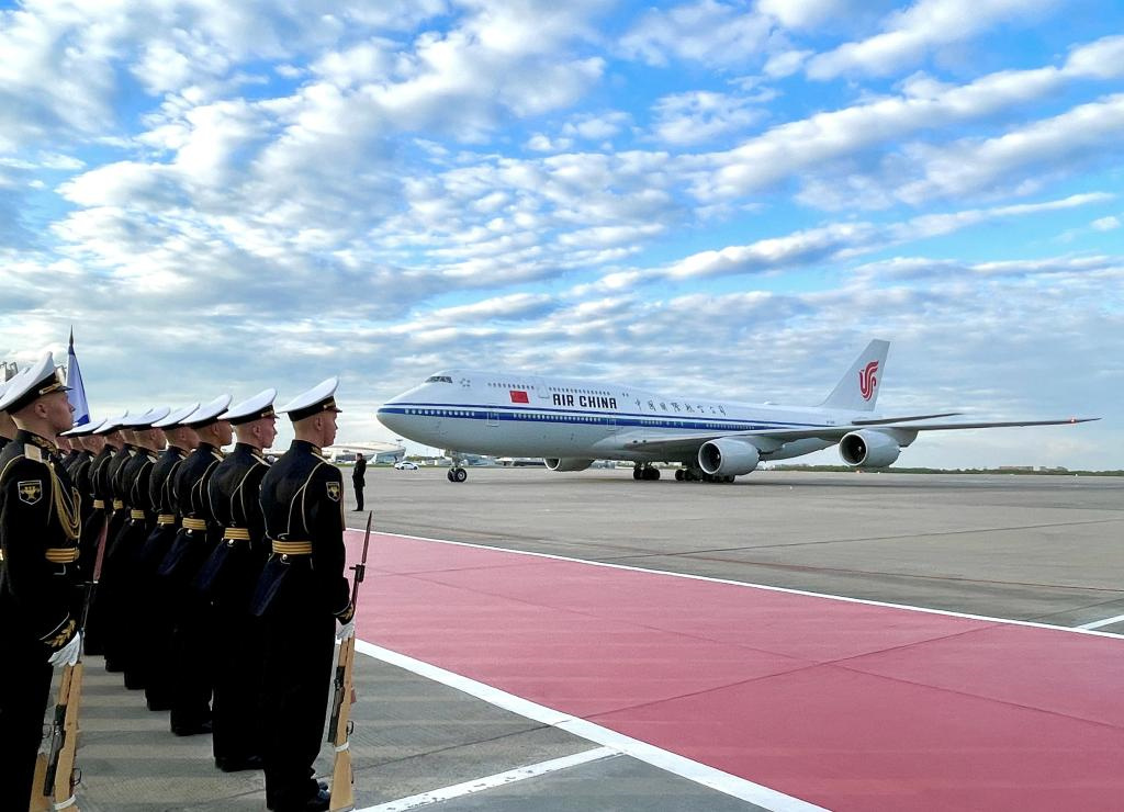 По прибытии председателя КНР в московский аэропорт Внуково его тепло встретили заместитель председателя правительства РФ Татьяна Голикова и другие высокопоставленные должностные лица.
