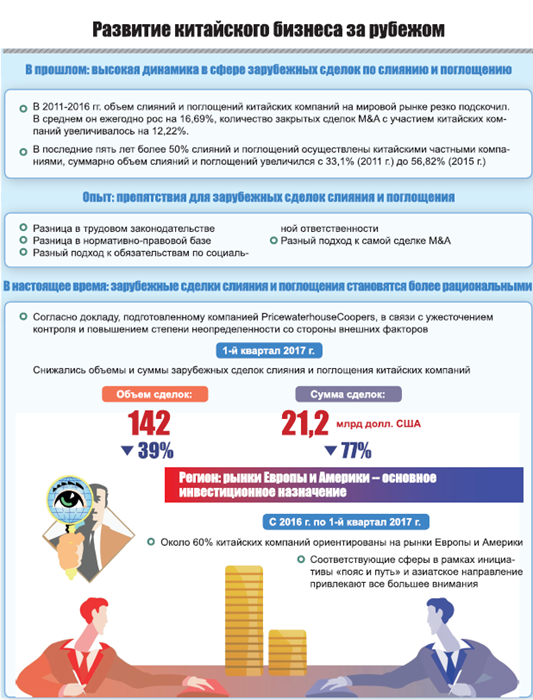Зарубежные сделки слияния и поглощения уже перестали быть редкостью, и китайские предприятия все более уверенно чувствуют себя на этом поле. При этом они не только сами стали более сильными и влиятельными, но и создали за границей положительный образ китайского предприятия и китайского бренда.