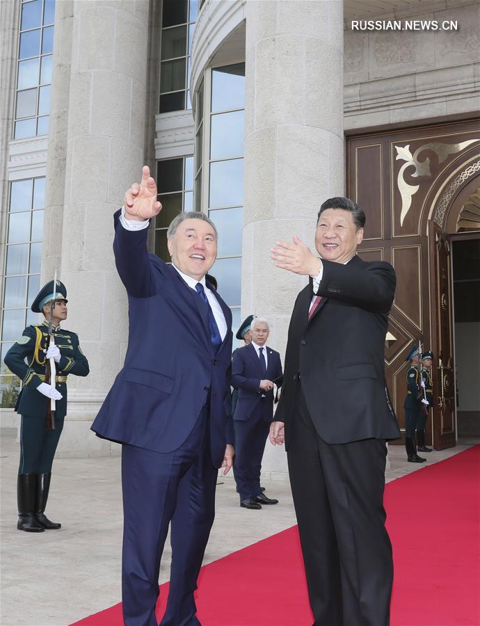 Н. Назарбаев горячо приветствовал визит Си Цзиньпина в Казахстан и выразил уверенность в том, что данный визит окажет значительное содействие казахстанско-китайскому всестороннему стратегическому партнерству. В настоящее время казахстанско-китайские отношения сохраняют благоприятную тенденцию развития, взаимодействие двух стран имеет огромный потенциал, отметил президент, добавив, что Казахстан готов углубить взаимовыгодное сотрудничество с Китаем и укрепить контакты и кооперацию в рамках ООН и ШОС. По словам Н. Назарбаева, инициатива "Пояс и путь" /"Экономический пояс Шелкового пути" и "Морской Шелковый путь 21-го века"/, которую Си Цзиньпин впервые выдвинул в Астане, имеет важное значение. Казахстан готов в рамках "Пояса и пути" активно сотрудничать в сферах транзитных перевозок, производительных мощностей, промышленных парков, финансов, сельского хозяйства и гуманитарной области, подчеркнул Н. Назарбаев.