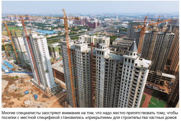 Известно, что в Китае действует строгая система защиты пахотных земель. Компании, работающие в сфере недвижимости, чтобы купить землю и построить здание, должны пройти многоуровневую проверку. В период, предшествующий строительству поселка нового типа, необходимо получить земельный участок и выстроить инфраструктуру, что не очень отличается от коммерческого развития предприятием недвижимого имущества, таким образом, часто создаются благоприятные возможности для некоторых предприятий.