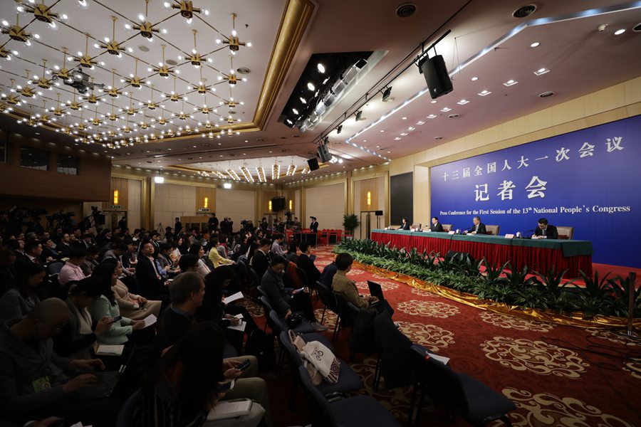 10 марта во второй половине дня в многофункциональном зале пресс-центра «Мэйдия» (Медиа) состоялась пресс-конференция в рамках 1-й сессии ВСНП 13-го созыва. Тема пресс-конференции: реформирование и развитие государственных предприятий. Председатель Комитета по контролю и управлению государственным имуществом при Госсовете КНР Сяо Яцин, заместитель генерального секретаря и пресс-представитель Комитета Пэн Хуаган ответили на соответствующие вопросы китайских и зарубежных журналистов. (russian.china.org.cn)