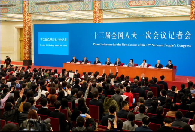 По окончании 1-й сессии ВСНП 13-го созыва состоялась встреча премьера Госсовета КНР Ли Кэцяна с журналистами