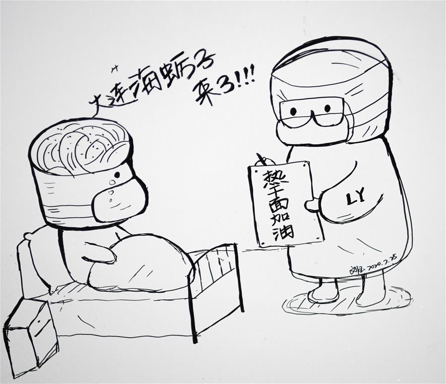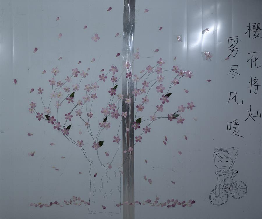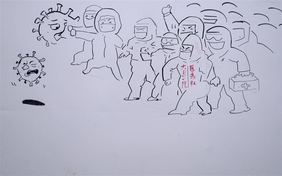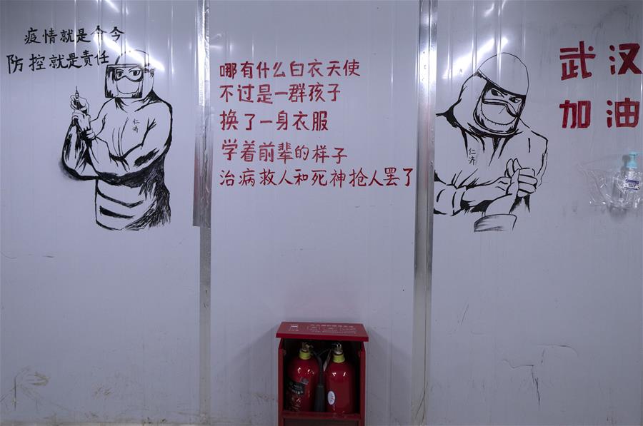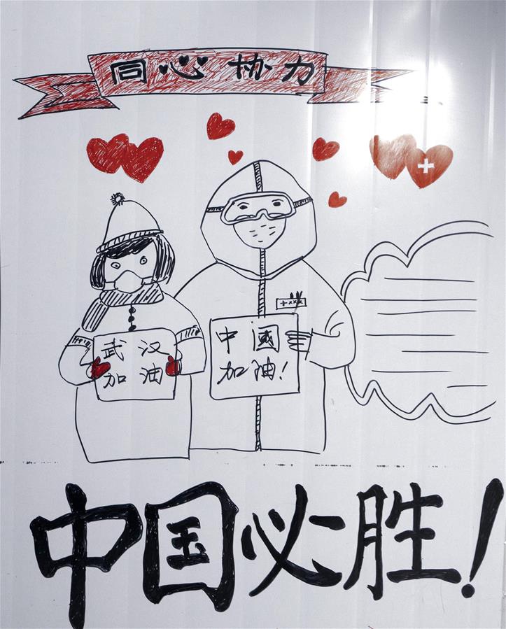 Ухань, 5 марта /Синьхуа/ -- Медики, работающие в специализированной больнице "Лэйшэньшань" в Ухане делают все, чтобы помочь своим пациентам не только излечиться от болезни, но и восстановить бодрость духа: на стенах свежепостроенной больницы появляются забавные и трогательные рисунки, короткие надписи, объединенные общим смыслом -- пожеланием здоровья и радости людям, пострадавшим от опасной инфекции.