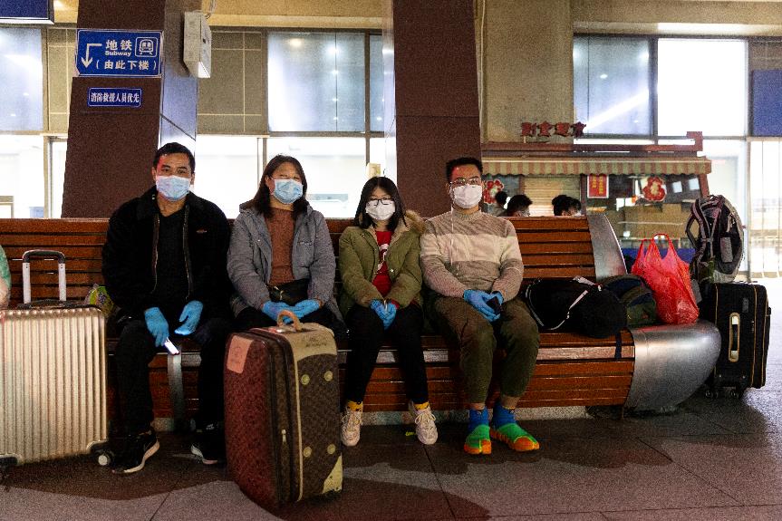 Женщина по фамилии Жэнь (вторая слева) вместе с членами семьи. Ее сын уже окончил учебу в университете, а дочь еще учится в средней школе. Родители Жэнь живут в г. Ухань. 19 января она вместе с семьей приехала к родителям, чтобы отметить Праздник весны. Но вскоре вспыхнула эпидемия, и Ухань был закрыт. Теперь они купили билеты на поезд из г. Уханя в г. Чанша.