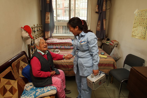 «Тетушка, мы снова на обходе... Сейчас зайдем к вам»... «Как ваше здоровье? Как чувствуете, кровяное давление понизилось в эти дни»?.. Ду Сяохун, идя по переулку, приветствует тех, кто встречается ей, и одновременно разъясняет шагающему рядом ассистенту содержание его работы: «Потом мы зайдем к Чжан Вэйцзи. Беспокоюсь, что у старика рецидив пролежня».