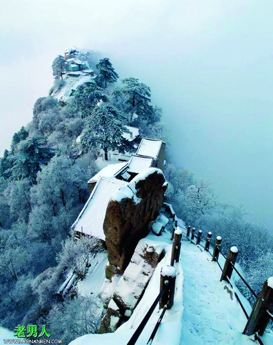 Горы Хуашань (华山), высота которых над уровнем моря составляет 2200 м, признаны опасными для восхождения туристов. Горная тропа до самой высокой вершины протянулась на 12 км, ее обступают отвесные скалы и утесы. С древности бытует поговорка «До вершины Хуашань с древности проложена и функционирует только одна тропа». У Хуашань имеется 5 пиков, из которых Восточный, Западный и Южный – наиболее высокие. С Восточного пика лучше всего любоваться восходами солнца. Западный пик по виду напоминает цветок лотоса и считается самым красивым в Хуашань. Южный пик является самым высоким в этих горах.