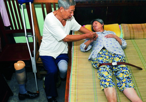 В 1986 г. на семью свалилось новое несчастье: Чжу Банъюе попал в автокатастрофу, и ему ампутировали левую ногу. С той поры он перемещался с трудом, несколько раз падал, помогая жене и сыновьям повернуться на другой бок. «Он кричит от боли, однако мы, лежачие, не в силах ему помочь. Мы очень беспокоимся о нем, ведь ему уже 70 с лишним лет», – говорит младший сын по имени Чжу Шаохуа.