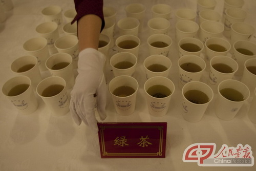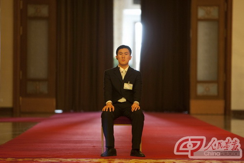 Рабочий Дома народных собраний предоставляет чайные напитки журналистам