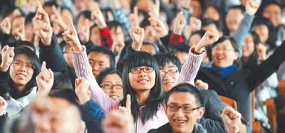 4 апреля более 5000 добровольцев Университета Тунцзи провели пробное мероприятия впредверии ЭКСПО. Все участники одновременно показали жестами лозунг добровольцев ЭКСПО – "Мы рядом с Вами, 2010".