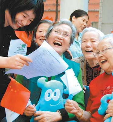 Молодые трудящиеся-мигранты района Путо в доме для престарелых организовали конкурс на знание о Всемирной выставке.