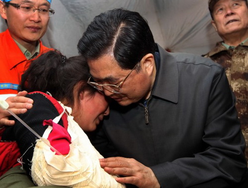 Ху Цзиньтао посетил пострадавший от землетрясения уезд Юйшу