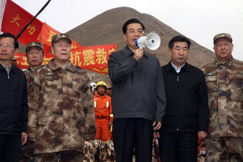 18 апреля утром Председатель КНР Ху Цзиньтао прибыл в пострадавший от землетрясения уезд Юйшу для проверки работы по ликвидации последствий стихии.