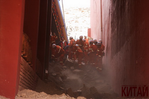 16 апреля: в монастыре Чанькусы в 10 км. от уездного центра спасатели извлекли из-под завалов чудом оставшихся в живых.