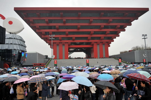 20 апреля в Шанхае парк Всемирной выставки ЭКСПО–2010 встретил первых посетителей, пришедших на пробное открытие павильонов. Сотрудники парка готовы всесторонне проверить работу всех служб и уровень организационной подготовки на местах. На фото: туристы ждут открытия входа в павильон Китая. (журнал «КИТАЙ»)