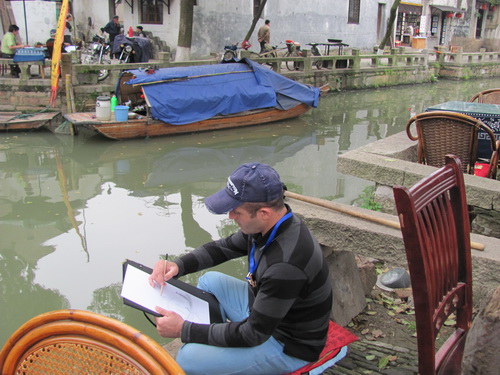 28 апреля делегация китайских и зарубежных художников в составе более десяти человек посетили древний китайский поселок Тунли, находящийся в уезде Уцзян пров. Цзянсу.