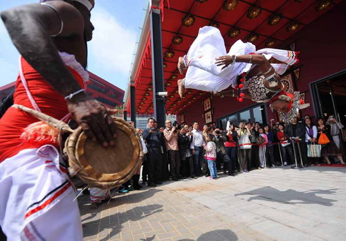 Танцы перед павильоном Шри Ланки обращают на себя внимание посетителей