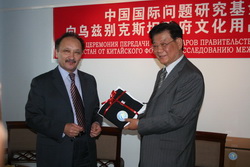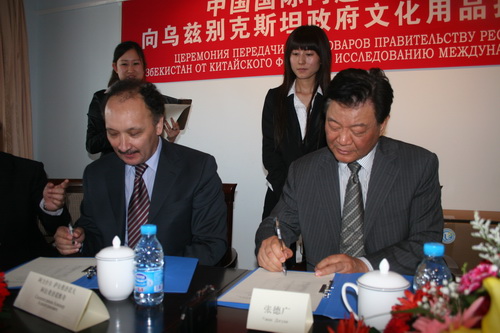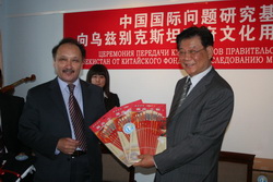 20 мая в Пекине состоялась церемония передачи правительству республики Узбекистан культоваров от Китайского фонда исследования международных проблем (КФИМП). В церемонии приняли участие Председатель КФИМП Чжан Дэгуан (бывший посол Китая в России), посол Узбекистана в Китае А. Салахитдинов, и другие дипломатические сотрудники двух стран.