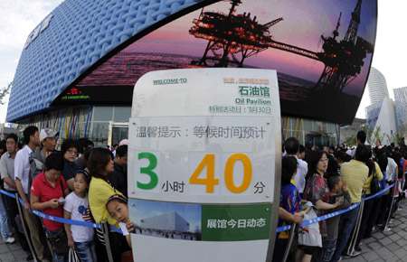 Сейчас в ЭКСПО-парке в Шанхае уже привычны длинные очереди перед государственными павильонами, и Нефтяной павильон, находящийся в районе Пуси, – не исключение. Большинство посетителей посещают его, чтобы собственными глазами увидеть фильм «Мечта о нефти», созданный в программе 4D. Чтобы достать билет и посетить павильон, надо простоять в очереди не менее 4-5 часов, но это ни чуть не ослабляет энтузиазм посетителей.