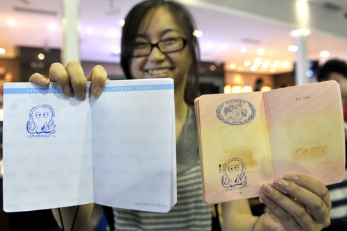 Осьминог Пауль (никнэйм) предсказал итоги восьми матчей Чемпионата мира по футболу–2010 и стал известен во всем мире. 12 июля в парке ЭКСПО-2010 посетителям ставили печать с изображением осьминога на сертификат, удостоверяющий факт посещения павильонов выставки. Девушка показывает фотографу такой сертификат с печатью.(журнал «КИТАЙ»)