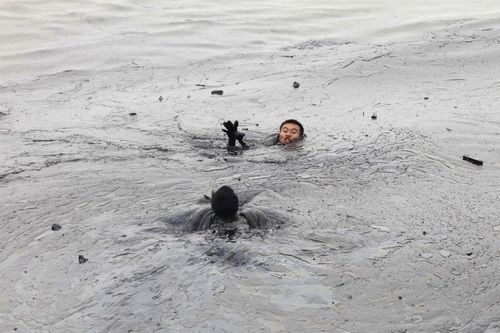 В настоящее время четыре специальных судна для сбора нефти Китайской морской нефтяной компании продолжают ликвидацию загрязнения. (по материалам а-ва Синьхуа)