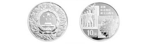 Народный банк Китая выпустил сегодня серию памятных монет из золота и серебра, посвященную 30-летию создания специального экономического района Шэньчжэнь в южнокитайской провинции Гуандун.