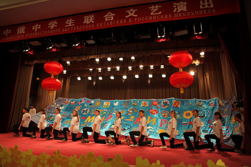 В актовом зале школы китайские и российские школьники пели и танцевали. В конце мероприятия директор школы №101 господин Го Хань и директор Всероссийского детского оздоровительного центра Валерий Тимофеевич Марзоев преподнесли друг другу подарки. (Журнал «Китай»)