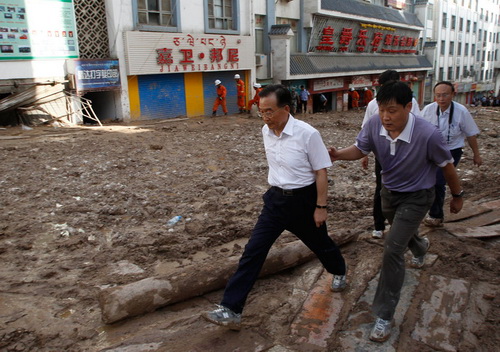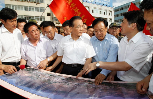 Вэнь Цзябао отправился в пострадавший от оползней уезд Чжоуцюй провинции Ганьсу