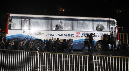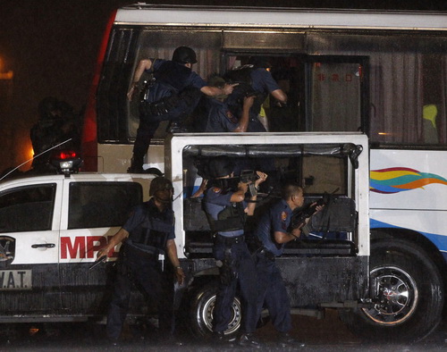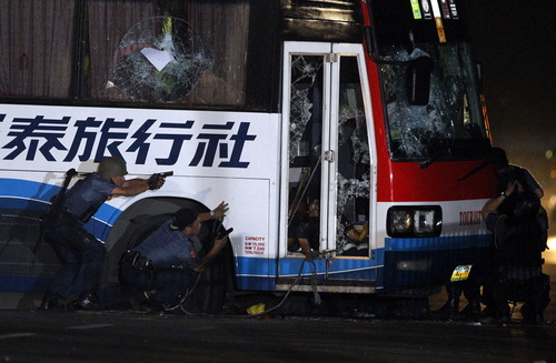 По сообщению СМИ Манилы, спустя 11 часов противостояния при захвате в заложники туристической группы из Сянгана в автобусе захватчик был убит полицией.