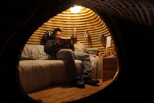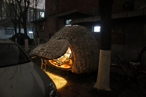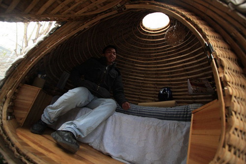 В одном дворе Пекина 24-лейний парень Дай Хайфэй из провинции Хунань (Южный Китай) построил дом в виде яйца, где он живет. Дай Хайфэй сказал, что себестоимость дома составит примерно 6400 юаней, он уже там прожил 2 месяца без бремени квартирной платы.
