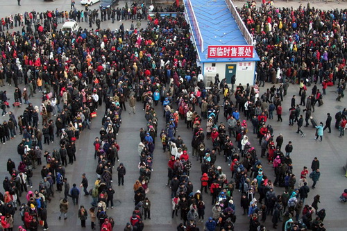 Праздник Весны в Китае принято встречать в семейном кругу. Придерживаясь этой многотысячелетней традиции, около сотни миллионов рабочих-мигрантов, десятки тысяч студентов вузов и многие другие до наступления праздника уезжают в родные места, а затем возвращаются к месту работы или учебы, что приводит к резкому росту пассажиропотока на всех видах транспорта.(а-во Синьхуа)