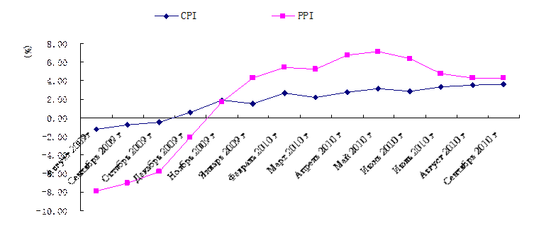 Способность населения выдержать повышение цен на товары снизилась, индексы потребительского доверия деревенских и городских жителей различаются. Согласно данным Государственного статистического управления КНР, за первые три квартала 2010 г. индекс потребительских цен вырос на 2,9%. При этом, в сентябре этот показатель повысился на 3,6%, цепной прирост составил 0,6%, масштаб повышения поставил новый рекорд роста за 23 месяца. (См. Таблицу 2)