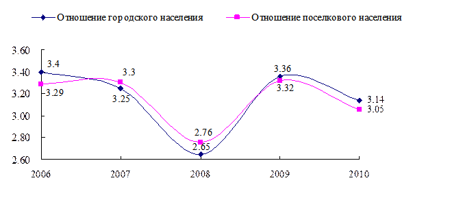 Индекс потребительского доверия 2010 г. среди городского населения находится на том же уровне, как и в 2009 г. В 2010 г. у городских жителей улучшилось представление об их собственном экономическом положении, их отношение к экономической ситуации в стране аналогично 2009 г., в то время как уровень признания ими возможности потребления несколько снизился. Что касается деревенского населения, то индекс потребительского доверия упал, остальные вышеуказанные три показателя тоже снизились, в результате индекс потребительского доверия среди деревенских жителей снизился до самого низкого уровня после 2006 г. (См. Таблицу 4 и Таблицу 5).