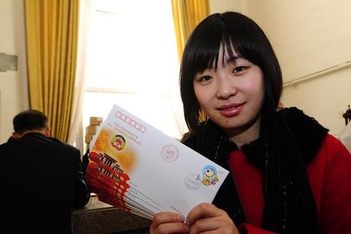 3 марта 2011 года, женщина демонстрирует почтовые конверты, посвященные «двум сессиям». В этот день начался выпуск почтового конверта, посвященного четвертой сессии ВСНП и ВК НПКСК 11-ого созыва.