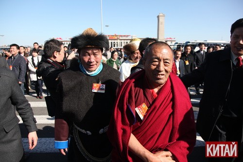 3 марта член ВК НПКСК из Тибетского автономного района Цянь Цзинь (первый слева) участвует в 4-й сессии ВК НПКСК 11-го созыва