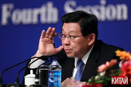7 марта в Пресс-центре «Мэйдия» состоялась пресс-конференция 4-й сессии ВСНП 11-го созыва на тему «Стимулирование потребления внешней торговли и экономики». На фото: министр коммерции КНР Чэнь Дэмин отвечает на вопросы журналистов. (Журнал «Китай»)