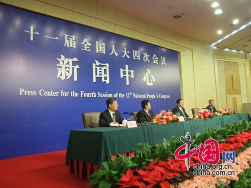 В пресс-конференции участвуют чиновники из министерства жилья, городского и сельского строительства КНР Ци Цзи и Фэн Цзюнь, специалист по контролю за рынком недвижимости Шэнь Цзяньчжун. (Китайский информационный интернет центр)