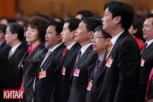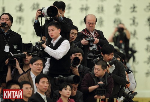 В первой половине 14 марта после закрытия 4-й сессии ВСНП 11-го созыва премьер Госсовета КНР Вэнь Цзябао ответил на вопросы китайских и зарубежных журналистов на 3-м этаже Дома народных собраний. На фото: журналисты на пресс-конференции