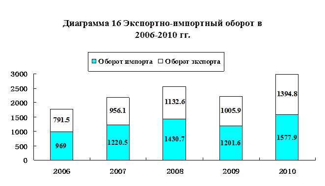 Торговый оборот подрядно-строительных работ китайских предприятий за рубежом в 2010 г. достиг 92,2 млрд долларов США (годовой прирост – 18,7%); торговый оборот внешнего сотрудничества в области предоставления рабочей силы составил 8,9 млрд долларов США, оставшись на прежнем уровне. |