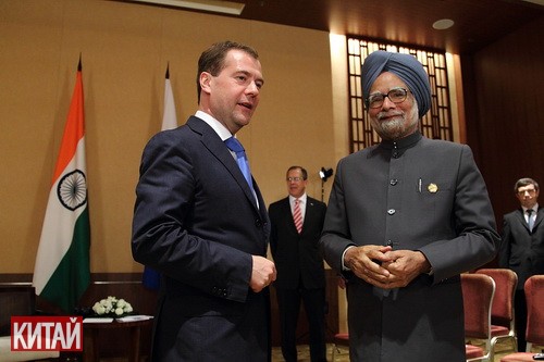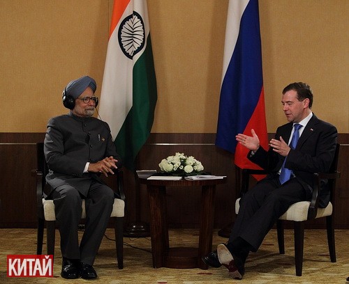 Российский президент Д. Медведев сегодня встретился с премьер-министром Индии Манмоханом Сингхом. Разговоры лидеров двух держав коснулись увеличении численности участниц-стран БРИКС, к которому соединился ЮАР.