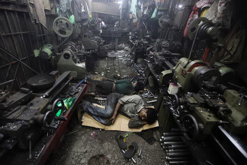 Снимок от 31 мая 2010 г. Город Бомбей (Индия): рабочие отдыхают в обеденный перерыв. В первом квартале года ВВП возрождающейся Индии вырос на 8,6%, и экономика страны почти достигла докризисного уровня. |
