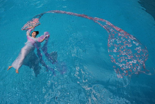 Пэн Цзысюань училась плавать и лежать на воде у своего отца. В последние годы в Китае вошла в моду йога, и девушка объединила эти два вида физкультуры и спорта, создав синтетический жанр, сочетающий гимнастику и плавание. Название «Китайская йога на воде» Пэн Цзысюнь придумала сама. Она выступает в традиционной китайской одежде «ханьфу» и для большей зрелищности использует в качестве театрального реквизита то «гучжэн» (древнекитайский щипковый музыкальный инструмент с 13, 16 или 25 струнами), то флейту, то складные веера или свитки национальной монохромной живописи тушью.