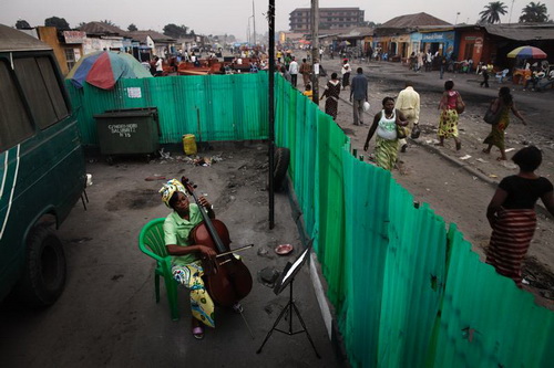 Снимок от 23 июля 2010 г. В одном из пригородов Киншасы (Конго). 37-летняя Жозефина Мпонго, виолончелистка местного симфонического оркестра, репетирует, готовясь к вечернему выступлению. Оркестр выступает 5 дней в неделю.