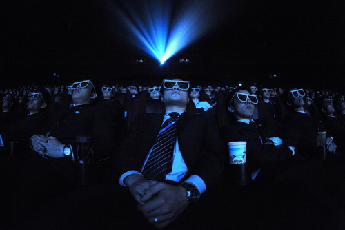 4 февраля 2010 г., в кинозале кинотеатра «3D MAX» города Гуанчжоу (провинция Гуандун, Южный Китай) на просмотре фильма «Аватар». |