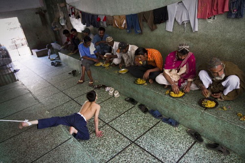 Снимок от 24 февраля 2010 г. Умственно отсталый 8-летний пакистанец по имени Гилли выпрашивает еду у обитателей «Эдхи-хоум» – Центра помощи бедным, который работает в крупнейшем городе Южного Пакистана Карачи. Фонд «Эдхи» – самая крупная благотворительная организация Пакистана.