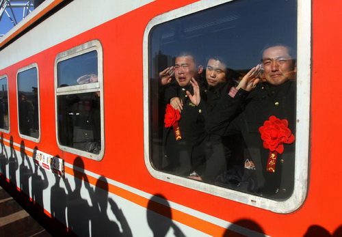 25 ноября 2010 г. демобилизованные ветераны НОАК прощаются с прежней жизнью, военной службой и боевыми друзьями, Даньдун, провинция Ляонин, Северо-Восточный Китай. |