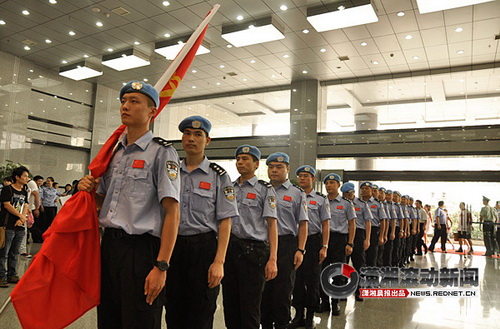 18 июля в Чанша (пров. Хунань, Южный Китай) состоялась церемония отправки Хунаньской полицейской бригады в составе 17 миротворцев для поддержания мира в Либериии. На фото: Расставание Бу Чжэнхуа с 10-месячным сыном по имени Бу Чунбинь (журнал «Китай», фото CFP)