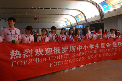 30 июля в аэропорту «Шоуду» Пекина встретили юных гостей из России. Они приехали в Китай на летний лагерь по приглашению Председателя КНР Ху Цзиньтао.