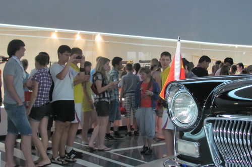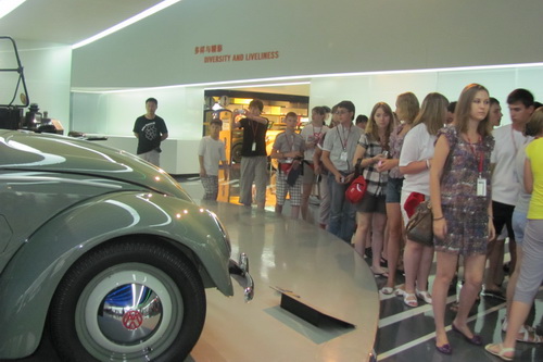 Во второй половине дня школьники посетили шанхайский автозавод «Фольксваген». 15-летний Александр сказал, что в России пока еще очень редко можно встретить автомобили китайского производства, но, посетив автозаводские цехи, он взглянул на китайскую автопромышленность новыми глазами. Как отметил Александр, по качеству и характеристикам китайские автомобили уже вышли в первые ряды мировой автомобильной индустрии. Экскурсия в Шанхайский музей автомобилей, где собраны автомобили разных времен и разных стран, также очень воодушевила детей. Дети с восторгом фотографировались перед любимыми моделями автомобилей. Последний день в Шанхае, подаривший столько ярких впечатлений, навсегда останется в памяти российских школьников.(Журнал «Китай»)