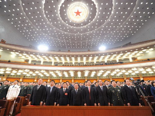На собрании председатель КНР Ху Цзиньтао выступил с важной речью. (Синьхуа)