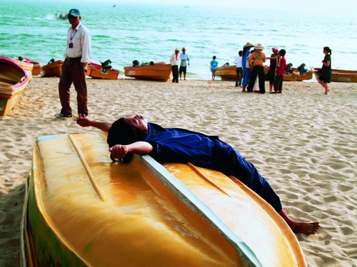 По пути к пляжу и на нем самом периодически идут торговые битвы за жемчуг. Одна русская бойко сбивает цену без слов, одними жестами, мимикой и нажатием на клавиши калькулятора. Мы тоже принимаем участие в игре под названием «торговля», разыгрываются целые драмы, торговки слезно бьют себя в грудь, уверяя, что им нечем будет кормить семью, в итоге мы покупаем жемчужные браслеты по 5 юаней и ожерелья по 15. |